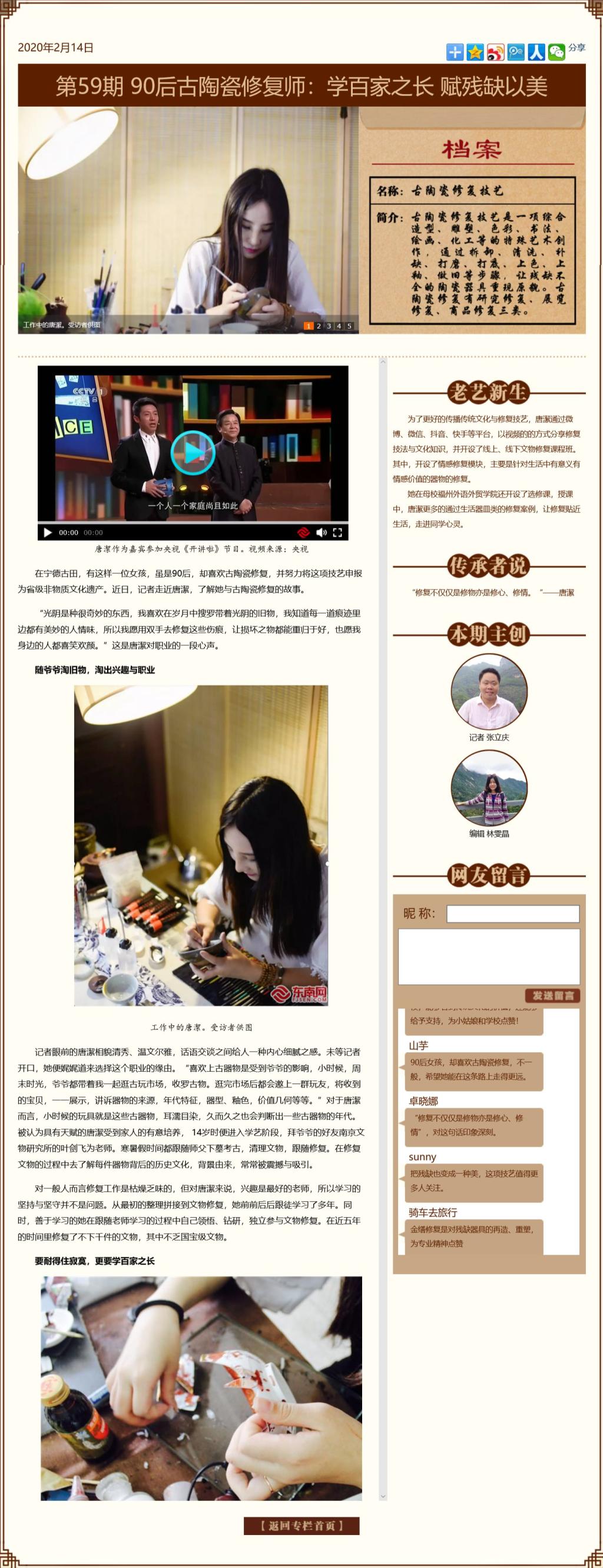 近日,《东南网》“继艺”栏目报道了我校优秀校友瞿汕在传播传统文化与古陶瓷修复技艺方面的事迹。
