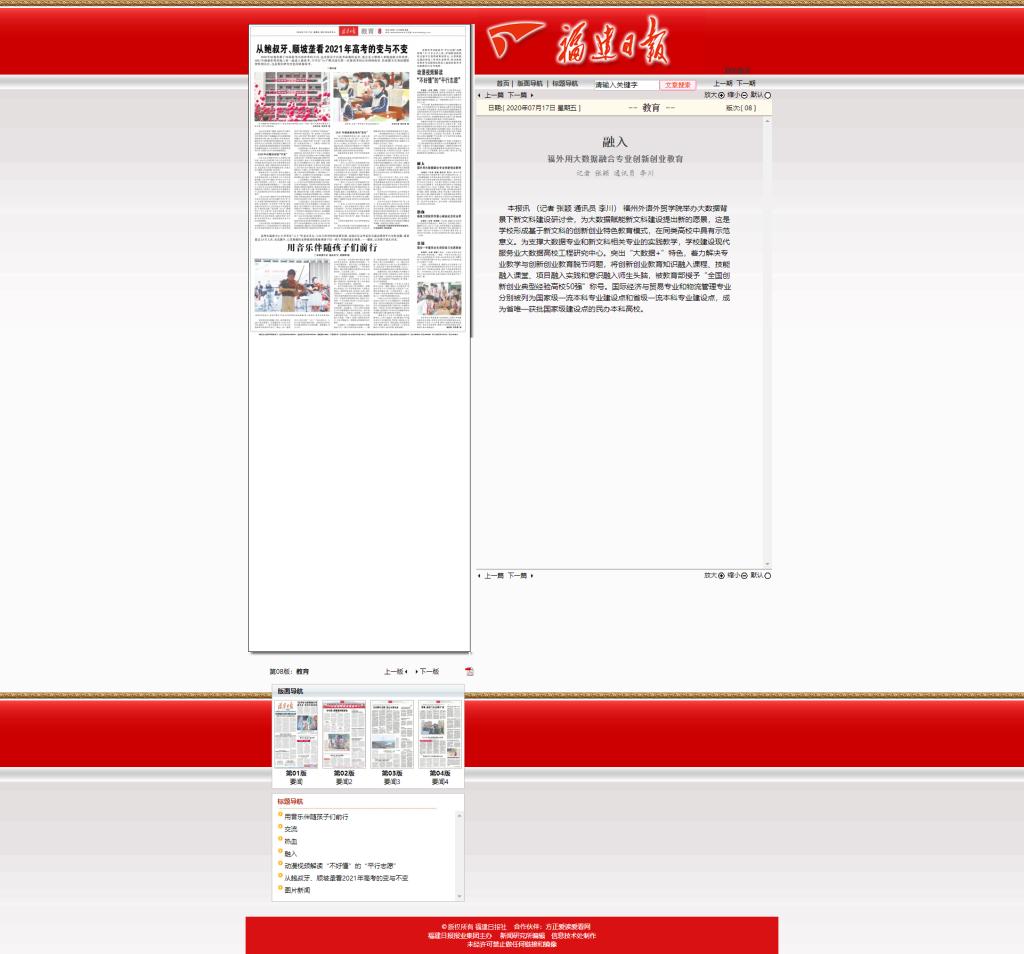 福建日报报道:融入——福外用大数据融合专业创新创业教育