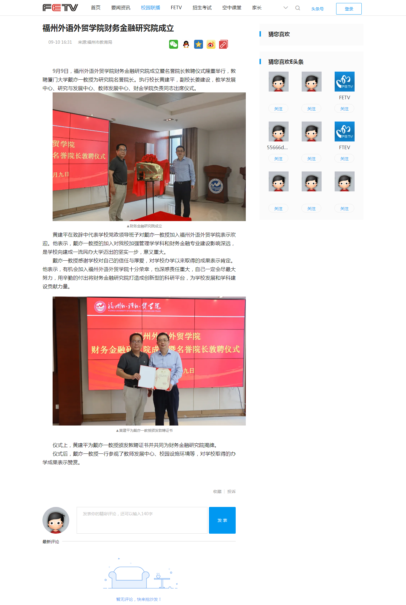 福建教育网报道:pg娱乐电子游戏财务金融研究院成立