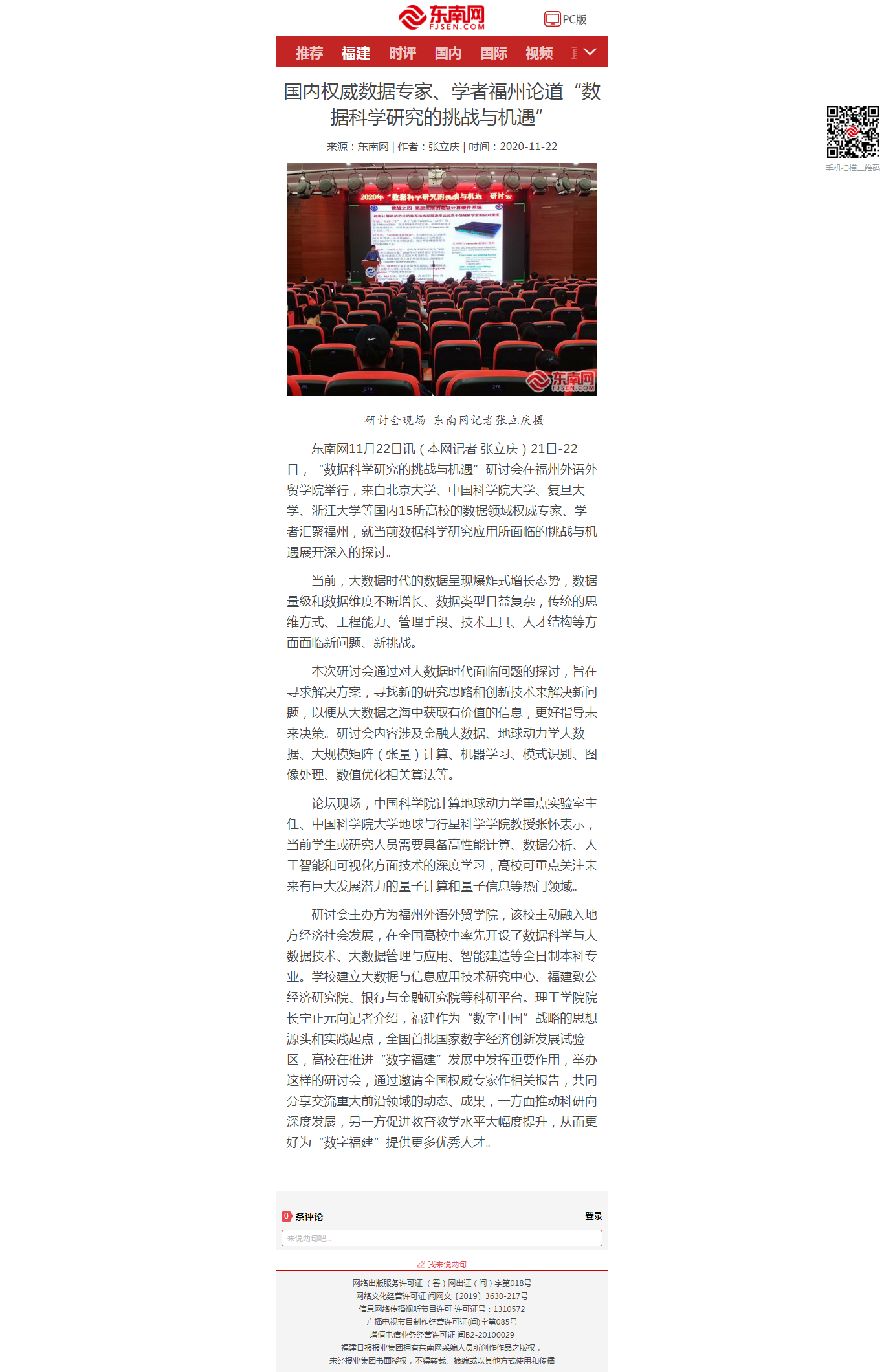 东南网报道:国内权威数据专家、学者福州论道“数据科学研究的挑战与机遇”