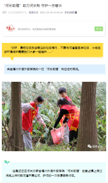 最美长乐公众号报道:“河长助理”助力河长制 守护一方碧水
