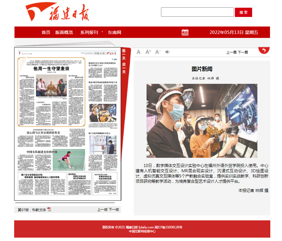 福建日报报导:数字媒体交交设计实验中心启用