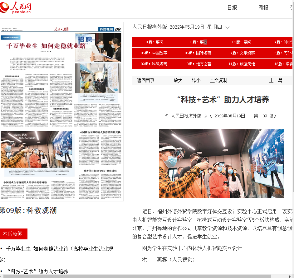 人民日报海外版报导:“科技+艺术”助力人才培养