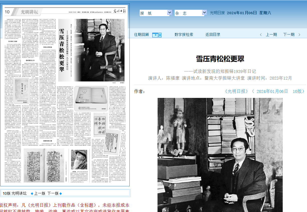 光明日报:雪压青松松更翠——试读新发现的郑振铎1939年日记