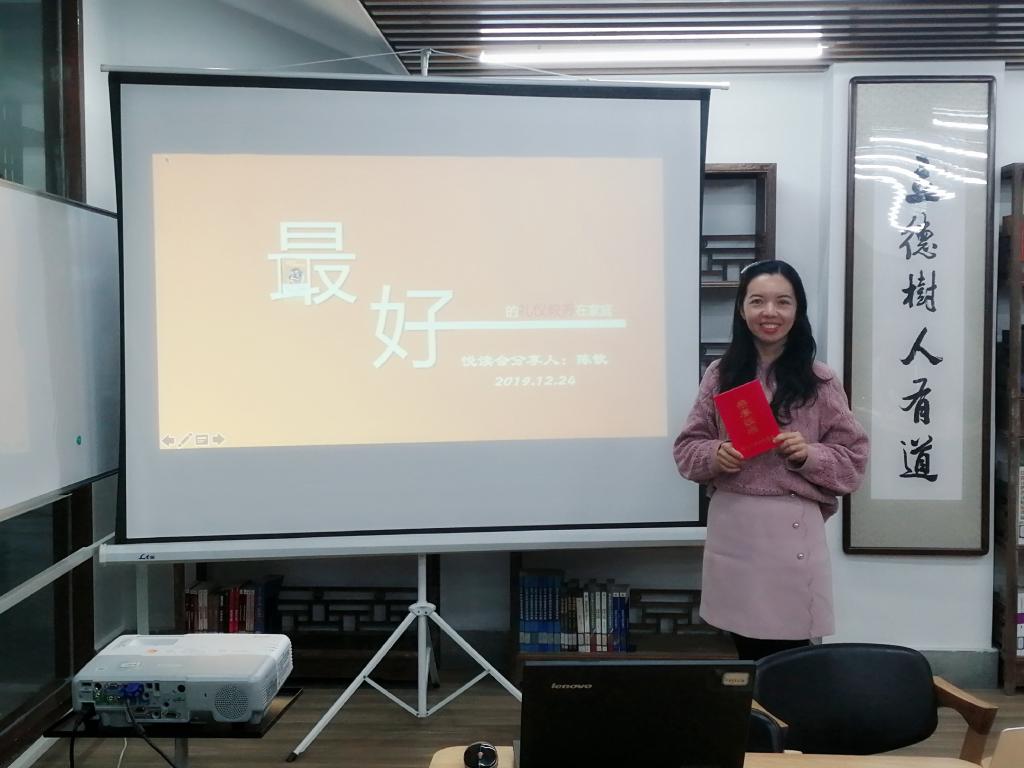 12月24日,教师发展中心邀请经管学院陈钦副教授作为第四期悦读会分享人,作题为《最好的礼仪教养在家庭》的主题沙龙活动,并为陈钦颁发了“悦读会主讲人”荣誉证书。
