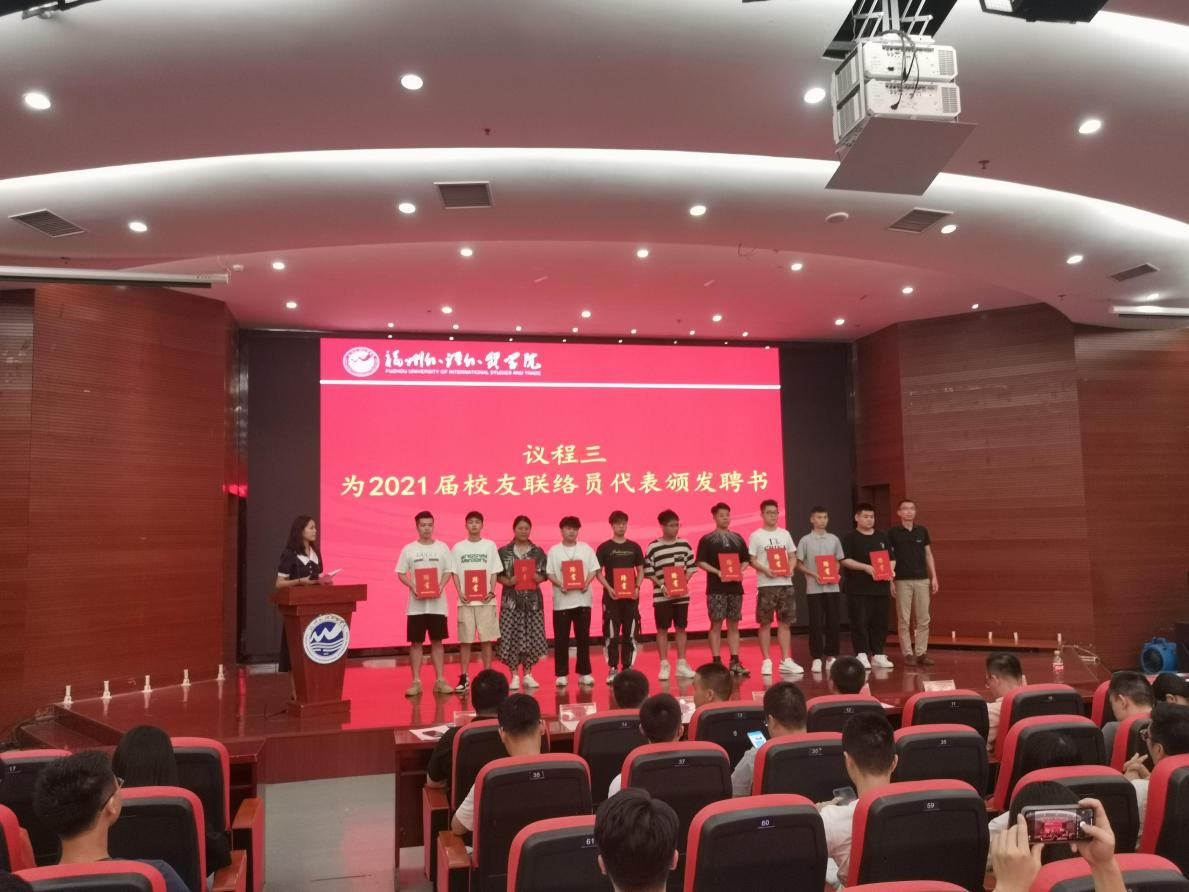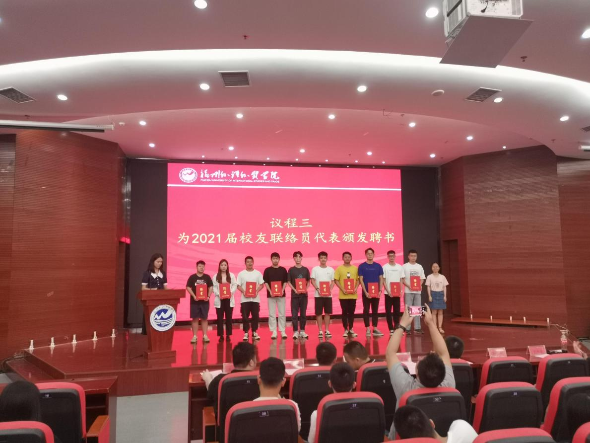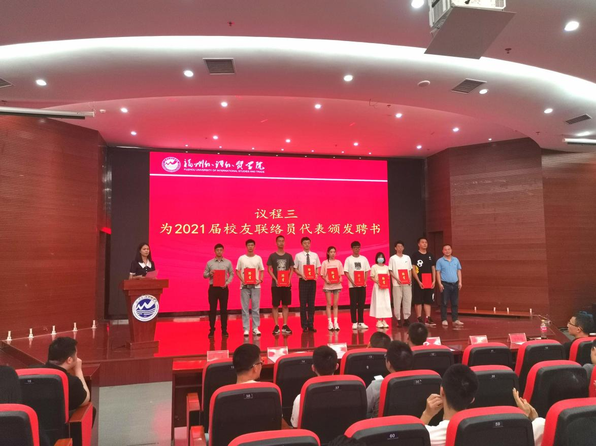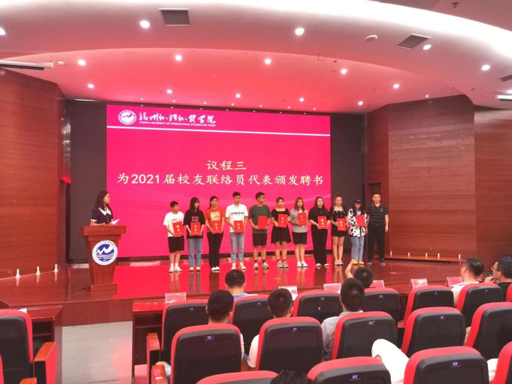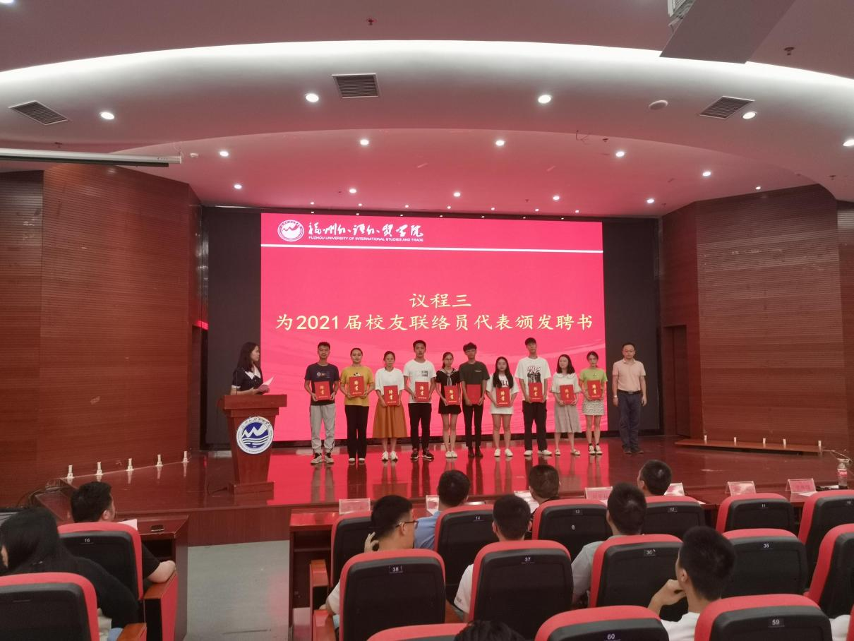 聘任仪式上,校友会工作人员介绍了学校校友会的建设情况,宣读《pg娱乐电子游戏关于聘任2021届校友联络员的决定》。随后,各学院分管学生工作副院长为新聘校友联络员颁发聘书,并合影留念。