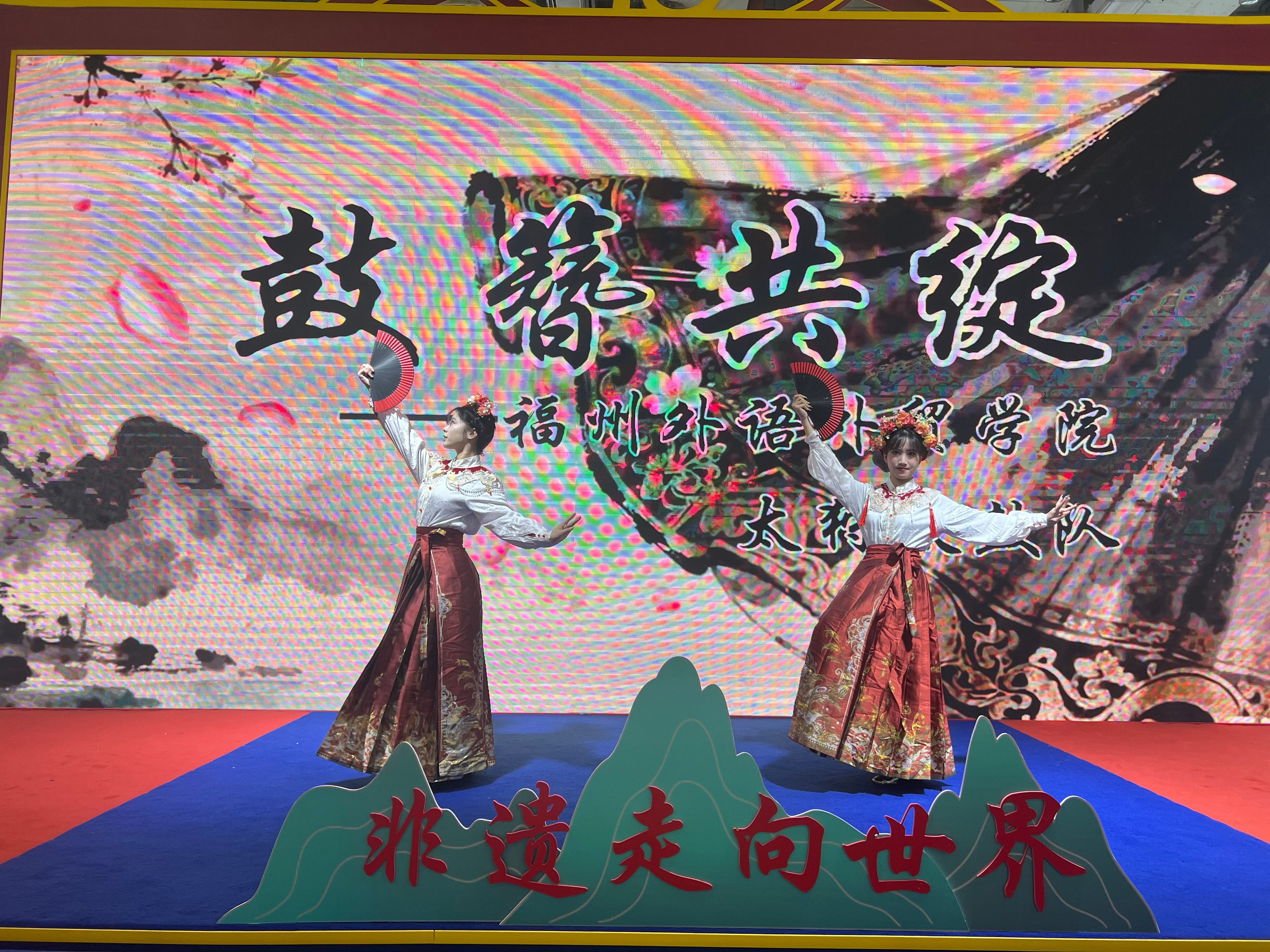 在福建省贸促会的邀请下,pg娱乐电子游戏“太狩”太鼓队(指导老师:曾凌云,学生:陈嘉道、吕文凯、王晗莹、林思琪、刘若希雨),惊艳亮相,以一场融合非遗与现代艺术的震撼表演《鼓簪共绽》,向世界自信展示福外青年的卓越风采,生动诠释了学校“外+”办学特色的丰硕成果。