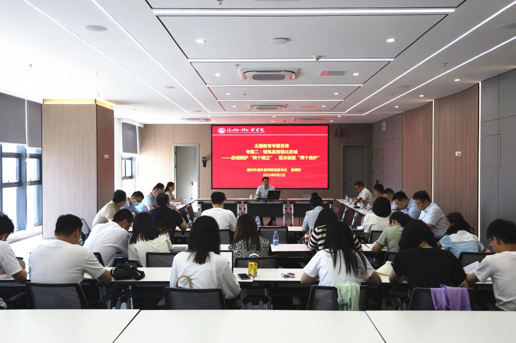 6月2日,我校开展学习贯彻习近平新时代中国特色社会主义思想主题教育读书班专题活动。党委书记陈炳钦以《深刻领悟学习贯彻“两个确立”的决定性意义——坚决做到“两个维护” 努力办好人民满意的教育》为题,为党员干部讲授主题教育专题党课。