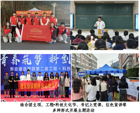 四是红色精神润初心,遵义会议精神进校园。宣讲团在高校结合团立项、工程•科技文化节、书记上党课、红色宣讲等多种形式开展主题活动。在团立项“廿载芳华照初心,青春挺膺展风采 ”汇报中,蒲公英宣讲团以遵义会议精神为主题,通过图文并茂的展示,让遵义会议精神深入人心,获得了十佳团立项、十佳团支书的荣誉。在工程•科技文化中通过组织红色特色游戏和红色知识竞赛等活动,激发参与者对红色历史的兴趣,让他们更深入地体会到那个时代的革命精神,并当代社会中传承和发扬,活动参与人数总计780余人。学院分党委书记以“传承红色基因,讲好遵义故事”为主题开展党课,涉及党员入党积极分子268余人。通过这些主题活动有利于深入挖掘红色文化的育人功能,引领新时代青年在多元文化碰撞交融中自觉抵御历史虚无主义、坚定文化自信、保护国家之根、延续民族之魂。